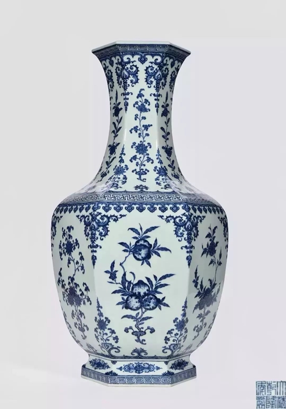 Blue and white folding flower and fruit pattern hexagonal bottle 10.95 million yuan