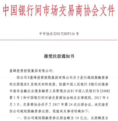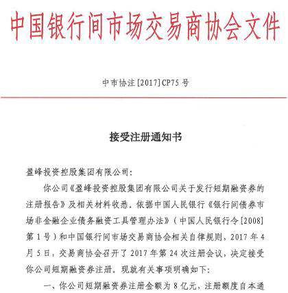 On April, 2017, informed by National Association of Financial Market Institutional Investors, Infore Holding has registered bonds of 3.8 billion Yuan successfully, including 2 billion yuan in medium term note, 800 million yuan in short- term financing bond and 1 billion SCP.