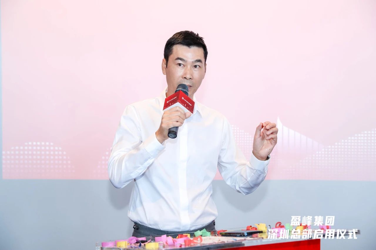 盈峰集團董事長、總裁何劍鋒發表致辭。他回顧了集團自1994年成立以來總部辦公場地幾經變遷的歷史,從最初的順德工廠到現在順德、深圳兩地現代化寫字樓,集團的發展已經不可同日而語。
